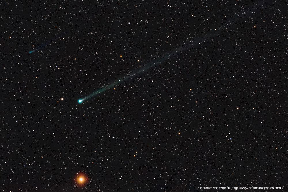 Mit dem Kometen C/2025 R2 (Swan) und seinem ausgeprägten Ionenschweif ist wieder einmal ein interessantes Beobachtungsobjekt für Teleskope, das aus den äußeren Bereichen des Sonnensystems kommt, für uns sichtbar. Er wird ab dem zweiten Monatsdrittel über dem westlichen Horizont sichtbar sein.